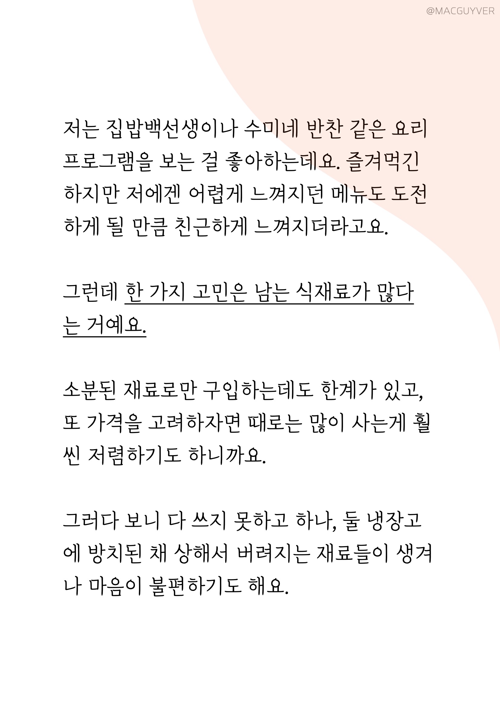 오늘은 제가 보만 가정용 진공포장기를 소개해드릴게요. 저는 집밥백선생이나 수미네반찬 같은 요리프로를 즐겨 보는데요. 그러면서 새로운 요리를 도전해보기도 하지만, 고민은 남은 식재료가 아닐까 싶어요. 여러분들도 저와 비슷한 고민을 하실 것 같은데요. 그 점에서 보만 가정용 진공포장기는 생각보다 슬림하고 공간도 많이 차지하지 않는데다 사용법도 간단해서 제 고민을 덜어주었어요. 예를 들면, 이렇게 김을 보만 진공포장기로 포장해 보니까 부피가 확연히 줄어들었어요. 보만 식품 압축기로 압축이 잘 되어서 부피가 커서 정리도 힘들고, 눅눅해지기 쉬운 김을 보관할 방법을 제대로 찾은 것 같아요. 혹시나 너무 숨이 죽은게 아닐까 싶어서 꺼내보니까 다시 두툼하게 돌아와서 걱정이 없어요. 거기다 보만 가정용 진공포장기로 진공 기능을 활용한 요리까지 가능하다고 하니까, 한 달 넘게 사용해본 소감을 전해드릴 예정입니다.