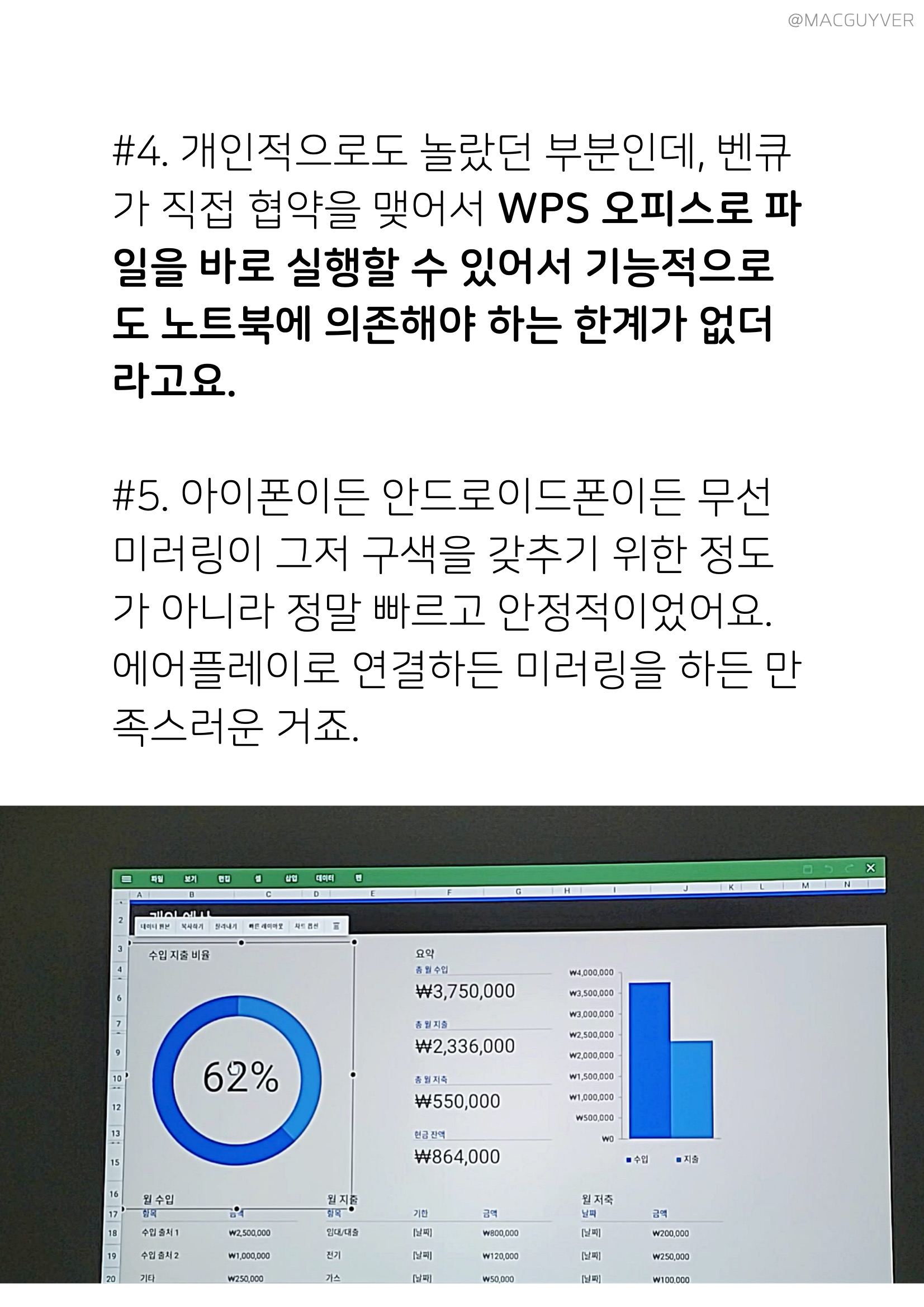 #4. 개인적으로도 놀랐던 부분인데, 벤큐가 직접 협약을 맺어서 빔 프로젝터에서 WPS 오피스로 파일을 바로 실행할 수 있어서 기능적으로도 노트북에 의존해야 하는 한계가 없더라고요. #5. 아이폰이든 안드로이드폰이든 프로젝터와 무선 미러링이 그저 구색을 갖추기 위한 정도가 아니라 정말 빠르고 안정적이었어요. 에어플레이로 연결하든 미러링을 하든 만족스러운 거죠. #6. 조금 독특해요. 계정을 지원해서 개인화된 사용도 가능하고, 구글이나 원드라이브에 접근도 가능합니다. 참고로 고성능 프로젝터 스마트 프로젝터 라인업에는 단초점 모델도 있고, 해상도까지 원하는 대로 선택이 가능해요. 그러니까 구매자가 사용목적과 패턴에 맞는 조건을 선택할 수 있는 거죠. 이런 장점들은 확실히 벤큐 안드로이드 스마트 프로젝터만이 가진 장점이라는 게 느껴졌는데요.