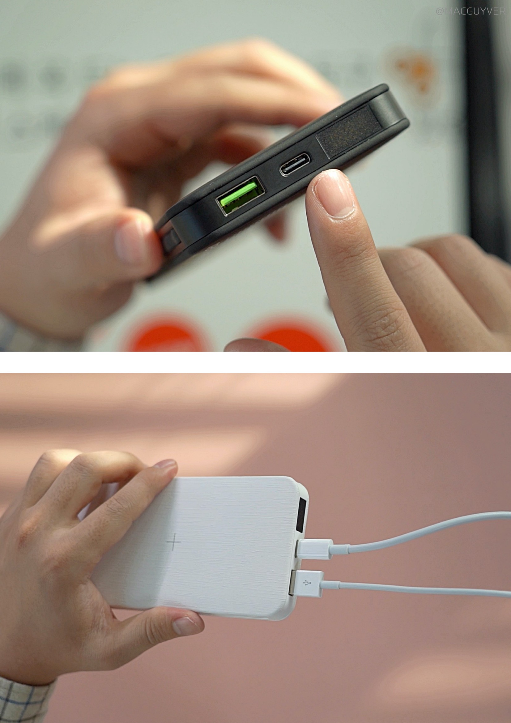 고속충전보조배터리 아이폰12 미니 : 0% - 27% A 아이폰12 미니 : 0% - 22% 자체 충전 : 30% - 29% 다음으로 조금 독특한 테스트를 해봤습니다. 보조배터리를 충전하면서 다른 기기를 충전해 줄 수 있는지 연결해봤는데요. 3대 이상부터는 2대까지만 인식해서 2대를 연결해보니까 보조배터리는 오히려 1%가 줄었지만 아이폰은 제법 빠르게 충전을 해주더라고요. 그러니까, 연결된 기기를 우선으로 충전해 주는 제법 합리적인 구조로 설계가 된 것 같습니다. 애플 충전기 0% - 24% - 46% - 69% - 85% 0% - 27% - 52% - 76% - 99% 마지막으로, PD 충전을 통해 자체 충전을 해봤는데요. 보조배터리만 연결해서 충전한 결과 충전기에 따라 편차가 있지만 대략 2시간에서 2시간 30분 정도에 완충이 되었습니다. 조금만 더 빨랐으면 싶기도 했지만 나름 퍼포먼스는 괜찮게 나오더라고요. 전체 정리를 해보자면, 자체 충전은 기대했던 것처럼 엄청 빠르지도 또 엄청 느리지도 않아요. 싱글은 아이폰이 체감상 더 빠른 편이고, 무선 충전도 최대 퍼포먼스가 나옵니다. A타입도 나름 속도가 괜찮은 데다 어떤 방식의 듀얼이든 쿼드 충전이든 맥시멈 22.5W 출력을 고르게 나눠서 충전을 잘 해주는 보조배터리라고 평가가 가능할 것 같습니다. 마지막 힌트는 ‘최대 22.5W 충전’ 함께 댓글을 남겨주시면 됩니다.